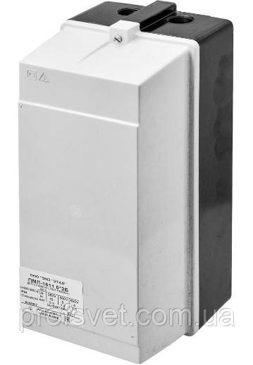 Контактор у корпусі ПМЛ-1511 - всередині пластикової захисної оболонки (на корпусі кнопок немає) зі ступенем пилу-вологозахисту IP-54 знаходяться два контактори першої величини ПМЛ-1101, номінальний струм 10А (потужність електродвигуна 5,5кВт, АС3 при 380В 50Гц), без теплового реле.
