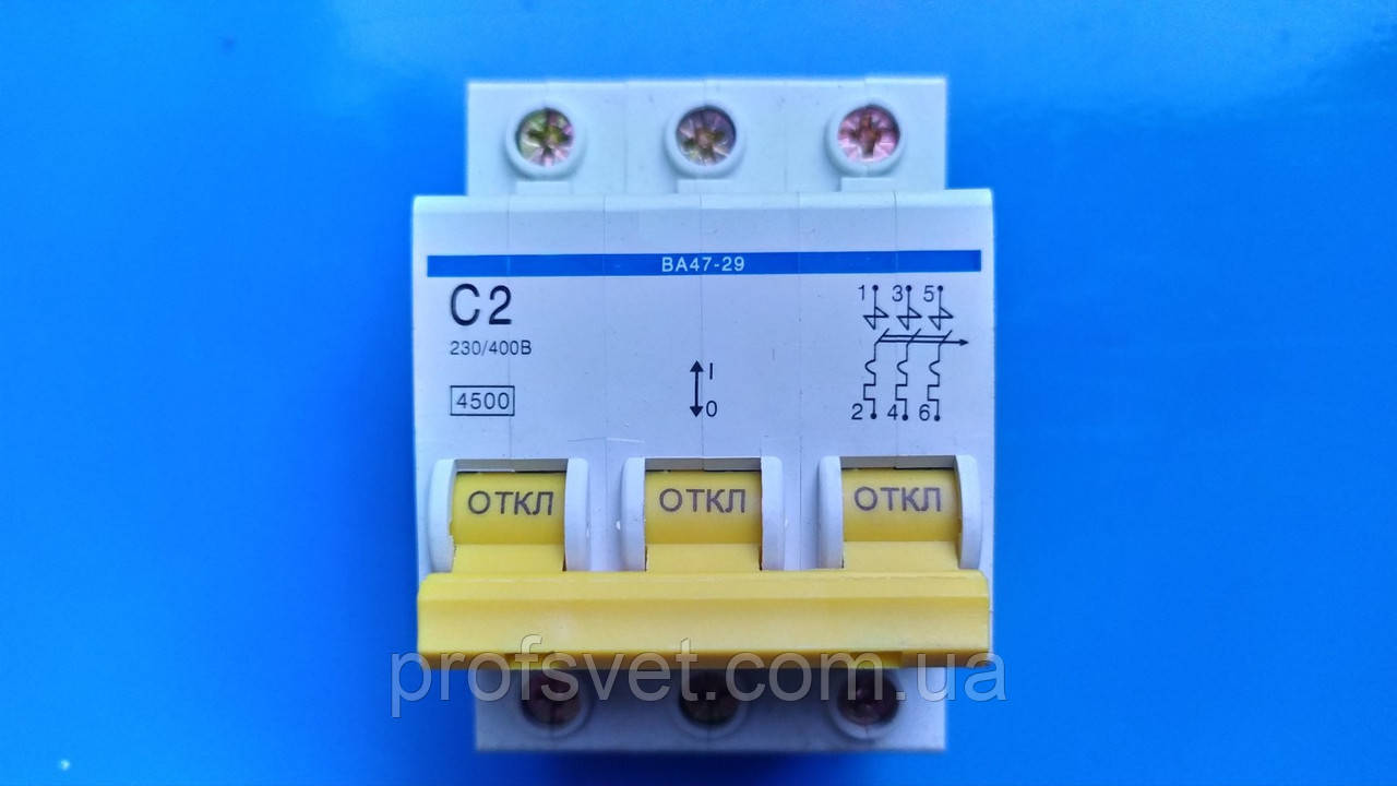 Автомат вимикач триполюсний 2А ВА47-29 С